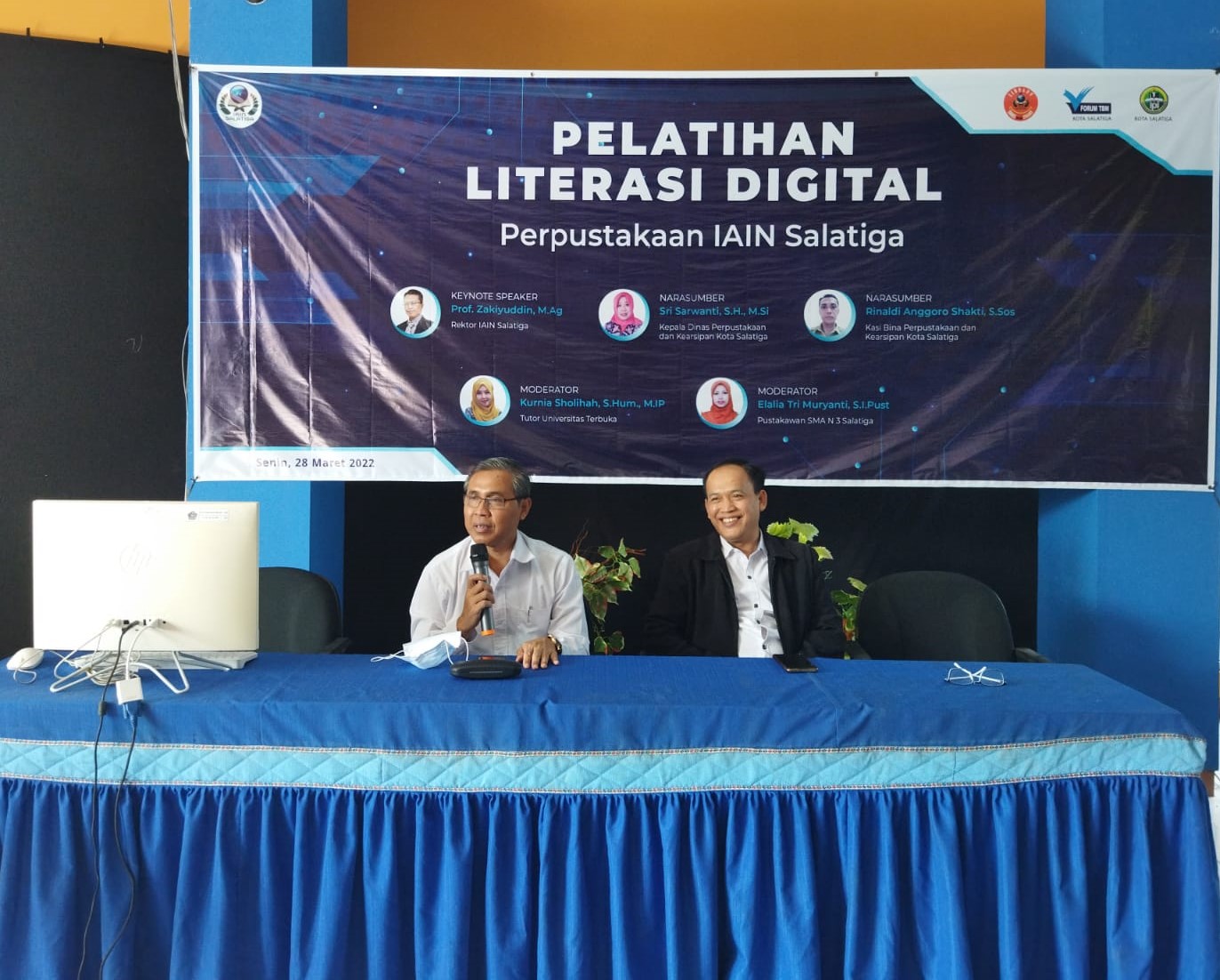 Salatiga – Senin (28/3), perpustakaan IAIN Salatiga mengadakan Pelatihan Literasi Digital pada hari Senin, tanggal 28 Maret 2022. Pelatihan ini mengusung tema “Video Editing” dengan menggunakan aplikasi Wondershare Filmora. Pelatihan ini dihadiri oleh para pustakawan sekolah dan pengelola taman bacaan masyarakat se-kota Salatiga. Wakil Rektor Bidang Akademik dan Pengembangan Kelembagaan IAIN Salatiga, Prof. Dr. Muh Saerozi, M.Ag. juga turut diundang untuk menyampaikan sambutan kepada para peserta sekaligus membuka acara pelatihan Literasi Digital. Para peserta sangat antusias terbukti dengan semangatnya para peserta dalam mengikuti pelatihan.