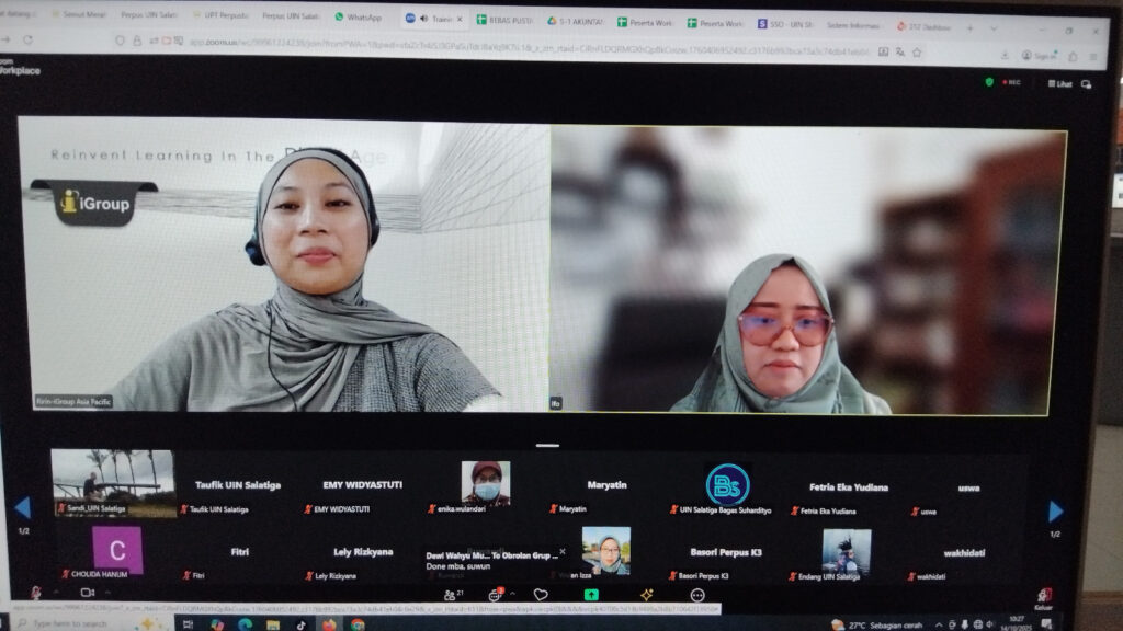 Salatiga, 14 Oktober 2025 — UPT Perpustakaan UIN Salatiga bekerja sama dengan iGroup Asia Pacific dan Emerald Publishing menggelar kegiatan Training Session secara daring melalui platform Zoom Meeting pada Selasa, 14 Oktober 2025.